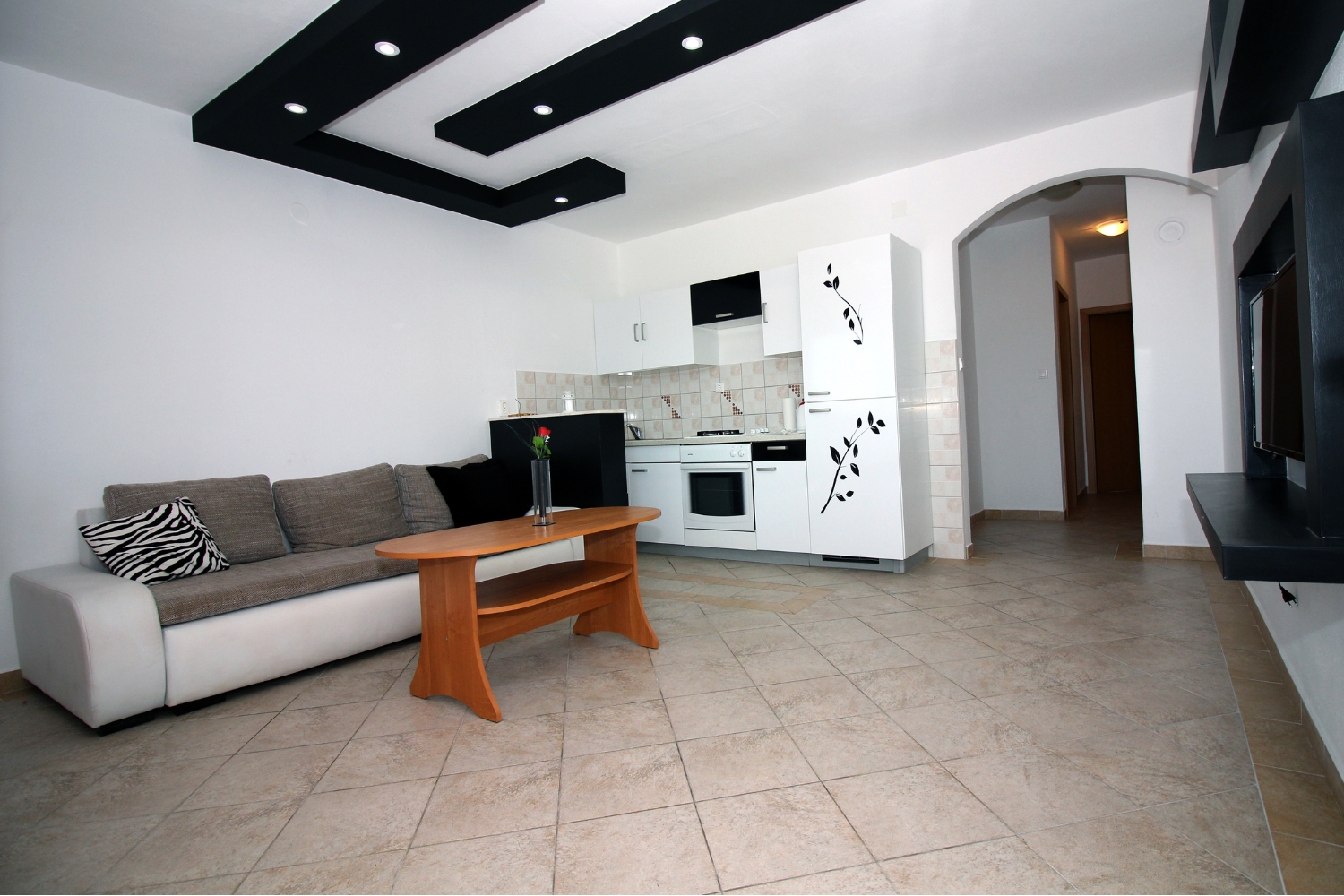 living area ( sofa bed for 2 people) with kitchen