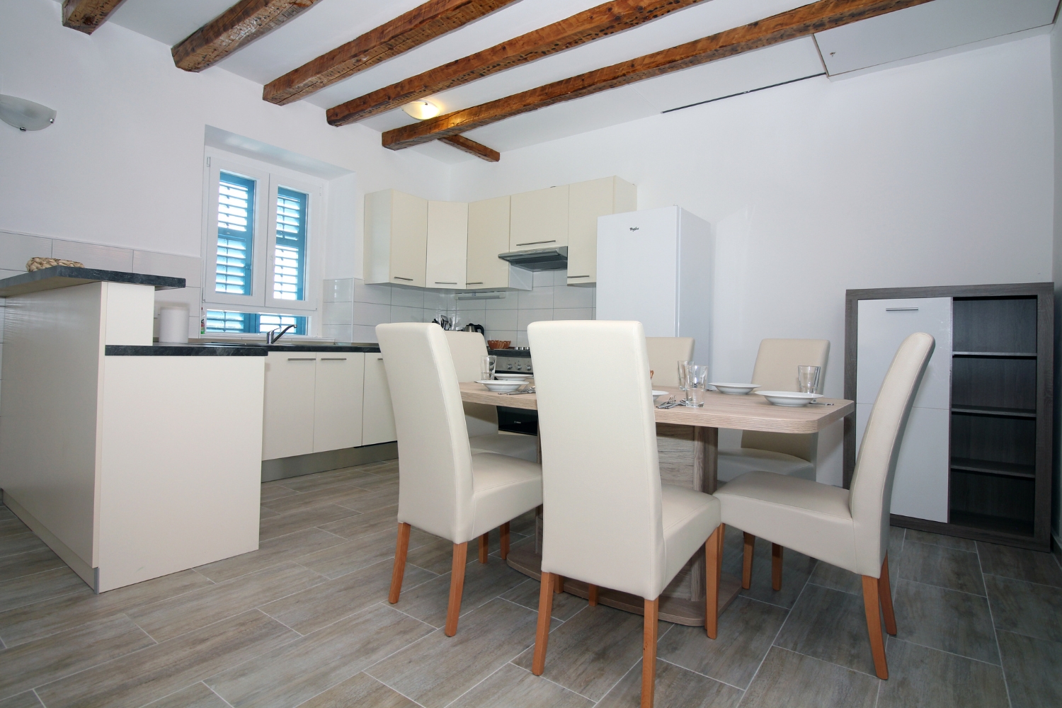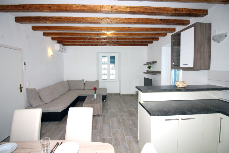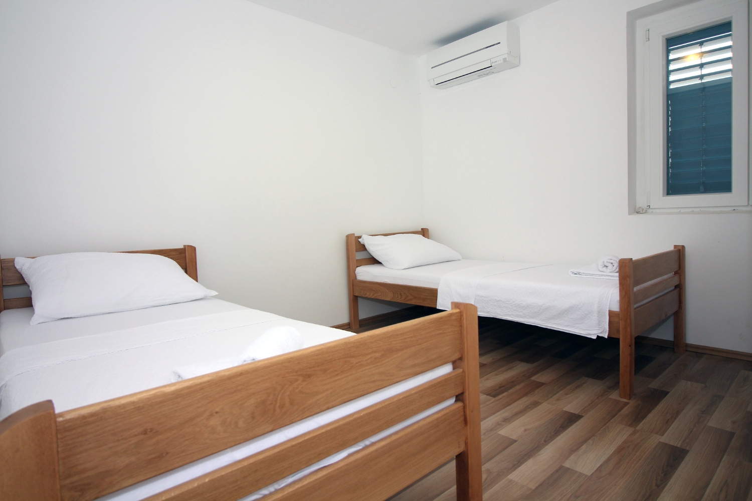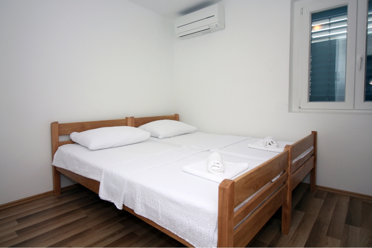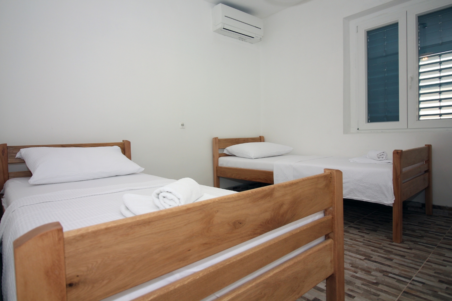 apartment on the 1st floor of a family house with a private entrance bedroom 1 – ( 2 x single bed) (A/C) bedroom 2 – ( 2 x single bed) (A/C) bedroom 3 – ( 2 x single bed) (A/C) 2 full bathrooms living area with a kitchen (A/C) – two people can sleep on the sofa bed backyard terrace wi-fi / washing machine / oven / dishwasher/ stove / free parking the apartment is located next to the bridge in Tisno walking distance from the festival site is 15 minutesFeatures