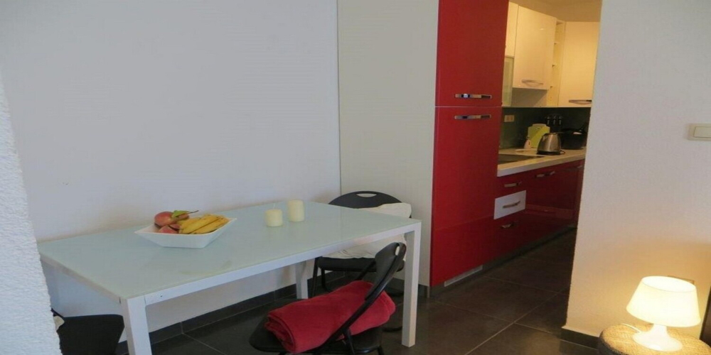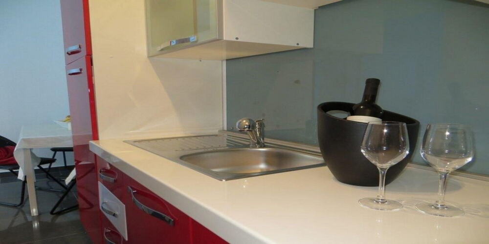 1st floor (1 AC) – bedroom with queen bed, living area with kitchen, bathroom and balcony